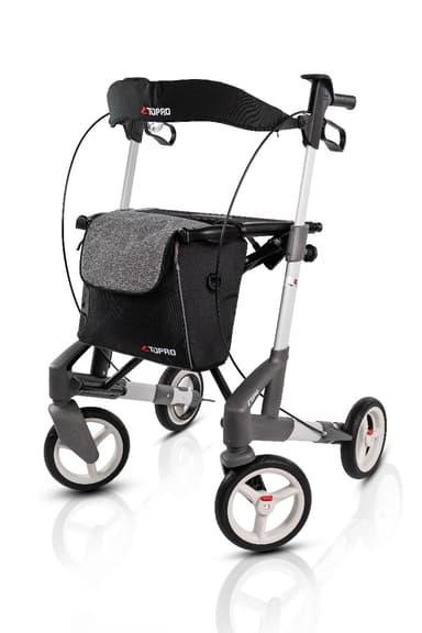 Wat is het verschil tussen deze Topro rollators? De Topro 5G is lichtgewicht door het aluminium frame. De Olympus ATR heeft grote voorwielen en banden met een diep profiel. Dit werkt schokabsorberend en zorgt ervoor dat je stabieler loopt. De Pegasus is nog zichtbaarder door de reflectoren op het frame. Daarnaast is de Pegasus een carbon rollator en daarmee lichter dan de Topro 5G.