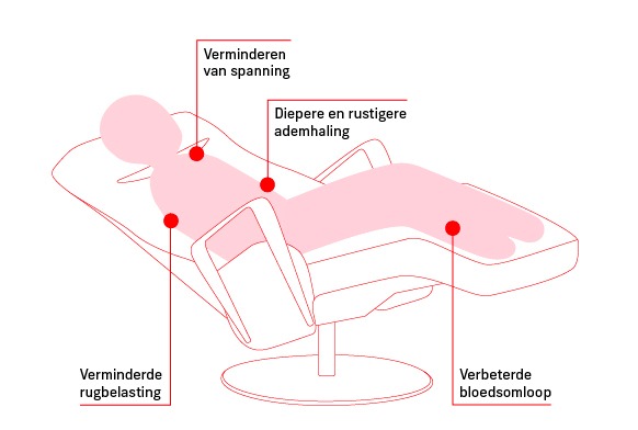 Verminderde rugbelasting: De zero gravity positie helpt de wervelkolom ontspannen, waardoor druk op de rug afneemt en rugpijn kan verminderen.