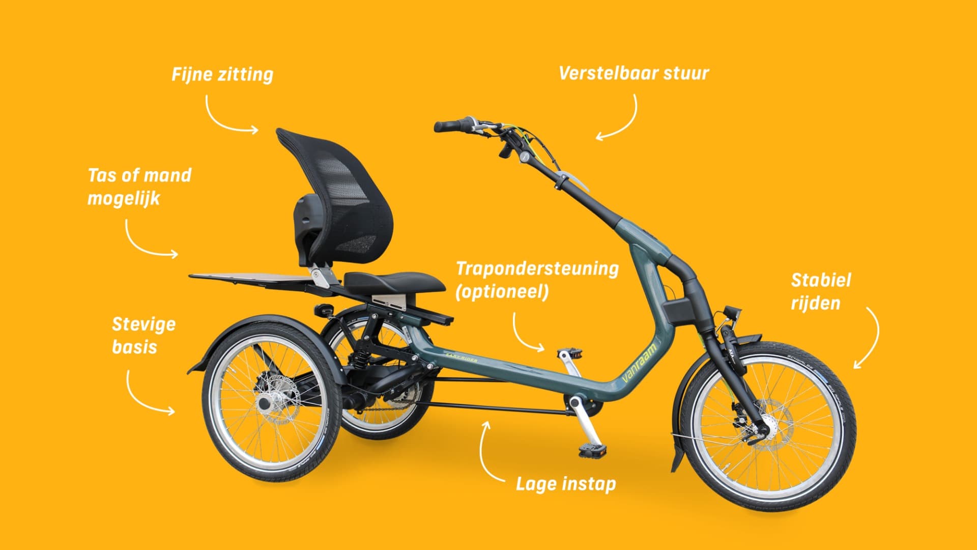 In balans blijven, dat doet een driewielfiets als vanzelf. Met een stabiele basis van drie wielen sta je stevig aan de grond. Toch kan het best wennen zijn als je voor het eerst op een driewieler stapt. Want waar je op een tweewieler je lichaam actief gebruikt om in balans te blijven, zoals bij het nemen van bochten, is dat op een driewielfiets niet nodig. Heb je het nieuwe gevoel eenmaal onder de knie, dan zul je merken dat het fietsen op een driewieler minder energie kost.