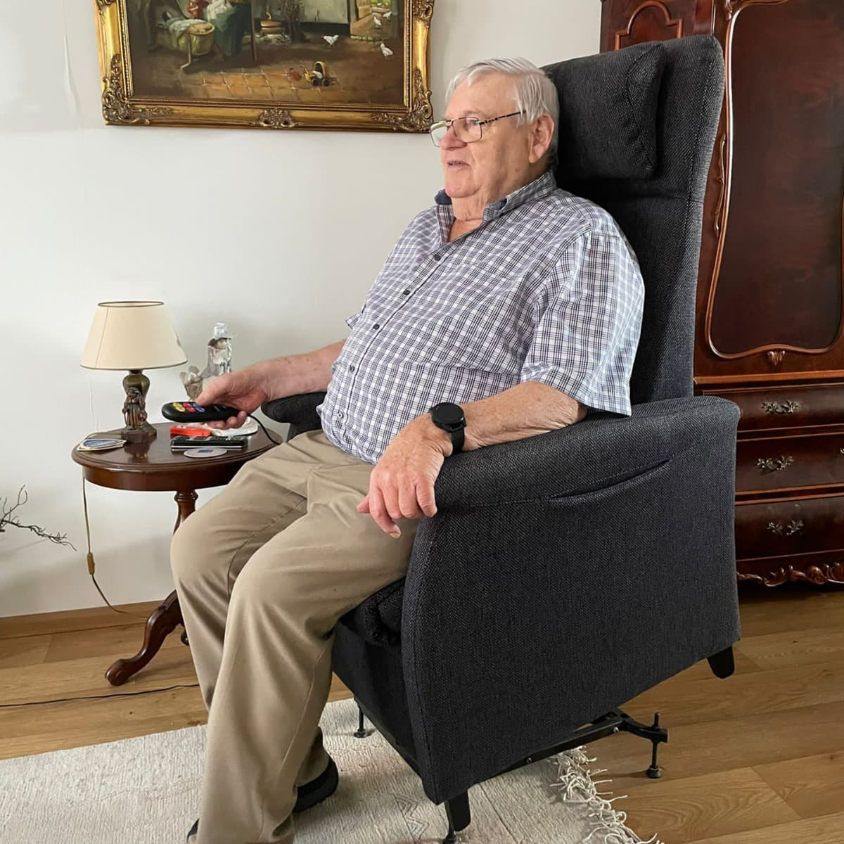 Piet (84) heeft altijd een druk en sociaal leven gehad en deed lichamelijk zwaar werk. Tot zijn pensioen was hij beheerder bij een gemeenschapshuis. Mede door corona kwam hij minder in beweging en kreeg hij last van gewrichtsslijtage. Comfort in huis werd steeds belangrijker. Daarom adviseerde zijn dochter een sta-op stoel.