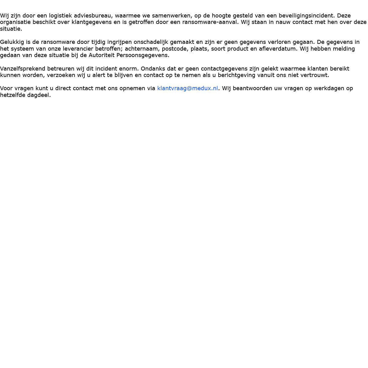 ContactReparatieverzoekLeenperiode verlengenBetalenRetournerenGarantieKlacht of compliment
